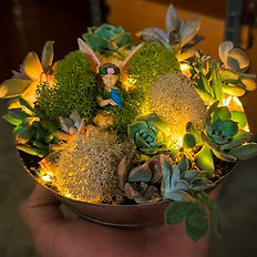 *Pricing includes acess for 4 participants* Join us for Moss and Magic, a hands-on workshop that invites your inner child to play among moss, succulents, and tiny worlds of your own creation. You’ll learn the art and science of cultivating succulents while designing a one-of-a-kind fairy garden to take home. Together, we’ll: - Explore the secrets of living soil and what makes plants thrive. - Plant and learn how to propagate succulents using cuttings and transplants from our own collection. - Design your own miniature world, layering soil, sand, pebbles, crystals, twigs, moss, and fairies. Whether you’re a plant enthusiast, a fairy believer, or simply craving a bit of nature’s magic, Moss and Magic will leave you inspired, joyful, and delightfully enchanted. What's included: fairy lights moss sand one fairy vessel